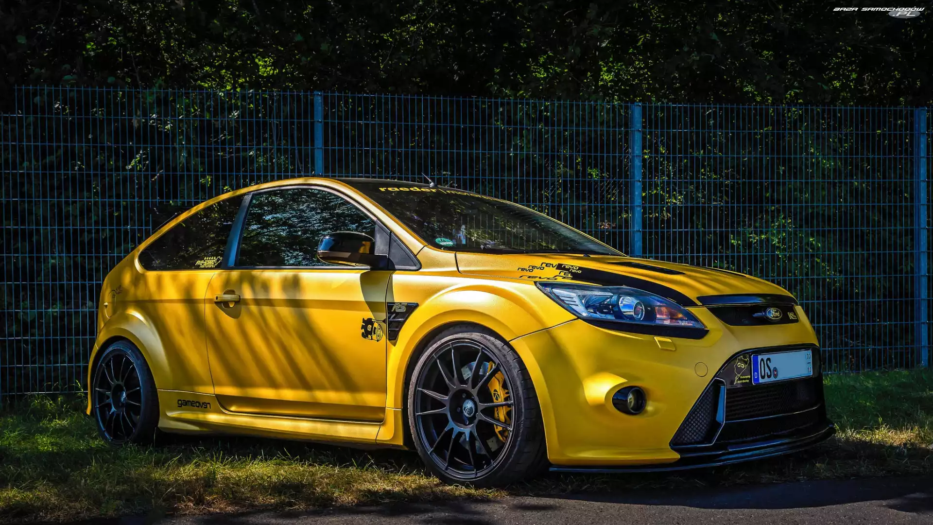 Samochód: Ogrodzenie, Żółty, Ford Focus RS II